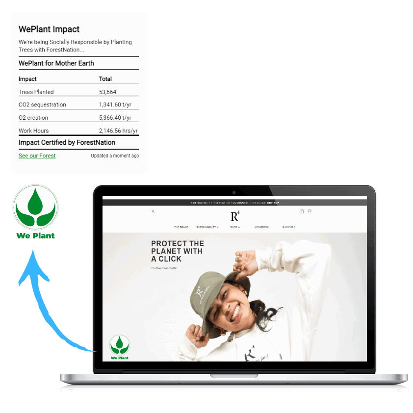 The WePlant badge displays the impact of your Forest on your website and proves your commitment to keeping our planet healthy. It increases conversion and communicates you’re fixing our broken climate. 🌍
